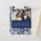 Elopement announcement Photo postcards in elegant dark navy blue and cream off white floral damask pattern, customisable with your names, wedding photo and wedding details, the perfect way to announce that you have eloped to friends and family. Available in a wide range of matching wedding products.