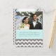 Elopement announcement Photo postcards in fun and modern pastel light turquoise blue, grey and white chevron retro zigzags pattern, customisable with your names, wedding photo and wedding details, the perfect way to announce that you have eloped to friends and family. Available in a wide range of matching wedding products.