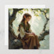 A cute elven girl sitting on a tree branch in a vintage dress blank card.