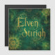 Golden elven script glows against a deep green backdrop, surrounded by mystical symbols and geometric sigils.