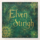 Golden elven script glows against a deep green backdrop, surrounded by mystical symbols and geometric sigils.