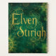 Golden elven script glows against a deep green backdrop, surrounded by mystical symbols and geometric sigils.
