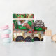 Elves surrounded by a tray of holiday cookies, including peppermint swirls and Christmas tree designs, along with wrapped presents and holiday decorations, creating a warm and whimsical scene perfect for the holiday season.