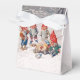 Tent-style with white ribbon favour box with a vintage image, on the front and back, of four elves out on a snowy day. One elf has tipped over his sled which another finds amusing. The other two elves look on with concern. See the entire Holiday Favour Box collection in the PARTY FAVORS section.