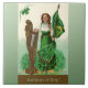 Square ombre green ceramic tile with a vintage image of an Irish woman, with shamrocks at her feet, holding a flag of Ireland in her left hand and resting her right arm on the golden Harp of Ireland. See matching paper plate. See the entire St. Patrick’s Day Tile collection under the HOME category in the HOLIDAYS section.