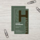 A simple design using the alphabet-H to form the word "Handyman" ; It forms the underlying signage at the right wall of the card. To accentuate the design there is a leaf tree behind the alphabet. All this in a dark green cover. The card details are on the opposite end. At the top are your prestigious name, followed by the slogan option and the contact details near the base of the card.