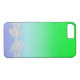 green, turquoise and purple gradient background with embossed dots and sheer white ribbon and bow