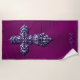 Embossed-look Gothic Cross in Purple with Monogram Beach Towel