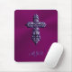 Embossed-look Gothic Cross in Purple with Monogram Mouse Mat