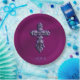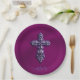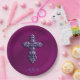 Embossed-look Gothic Cross in Purple with Monogram Paper Plate