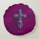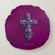 Embossed-look Gothic Cross in Purple with Monogram Round Cushion