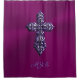 Embossed-look Gothic Cross in Purple with Monogram Shower Curtain