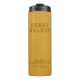 Customise and personalise this elegant gold yellow faux vegan leather thermal tumbler with 3 layers of typography in different shades to simulate the embossed look.