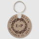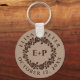 Vintage embossed rose wreath on rustic kraft paper fall wedding keychain. The focus of this rustic design is a lovely rose wreath frame with your initials in brown in an embossed relief style.