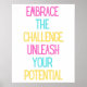 Elevate your space with our "Embrace the Challenge, Unleash Your Potential" motivational typography poster.