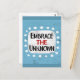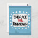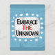 "Embrace The Unknown" is a cute inspirational or motivational quote with a white accent shape surrounded by white textured whimsical dots.