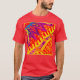 I give wanted to give this a 4 instead of a 5 because these Basic DARK T0shirts run unexpectedly SLIM or Narrow. Which is great if you do not have a potbelly, but I have a paunch. It isn't the shirt's fault that I've got a beer belly. The design and shirt itself is a quality cotton shirt. The color is more of a deep purple, but still a very pretty color. The Basic DARK T-shirts run a bit SLIMMER than the Basic Ts. The neck is a fraction narrower (or seems to be narrower) also. I'm a paunchy middle-aged woman and my neck is 12 inches (31cm) thick and the neckline fell about the same as in the photo of the man, and I had the desire to tug it a bit. So if you're a thick necked man or like loose shirts, be aware these are slimmer shirts. Once I get rid of my lockdown paunch it'll look great. The shirt washed well in cold water with no apparent bleeding. We don't have a dryer, so it hung dry. Did not shrink. Love the colors and the design. The design looks smaller on my shirt than it does on the model on-line. But still, it looks good on the shirt. The printing looks as it does on the model, just the size seems fractionally smaller. Washed garment in cold water, hung dry and design appeared unaffected.