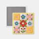 Colorful quilt block patterned fridge magnet printed with realistic looking embroidered flower and button details. Cute, decorative as well as functional collector's gift for anyone who loves quilting or sewing.