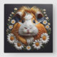 Embroidered Guinea Pig with Daisies Square Wall Clock