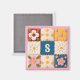 Embroidered Lace and Flowers Monogram Quilt Block Magnet