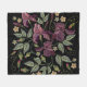 Embroidered Purple Irises Black Background. Fleece Blanket