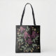 Embroidered Purple Irises Black Background. Tote Bag
