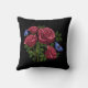 Beautiful embroidery design throw pillow featuring featuring red roses, green leaves and blue butterflies on black background makes an amazing home decoration. Perfect gift for birthday, wedding or housewarming party. A great gift for those who loves embroidery and nature.