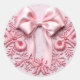 Embroidery Pink Christmas Bow Classic Round Sticker