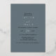 From the Emelia Collection, this dark blue and silver foil wedding invitation is perfect for a modern, boho-inspired celebration. The minimalist design features stylish, simple typography on a slate blue-grey backdrop, exuding modern sophistication. The couple’s names, wedding date, and accent lines are highlighted in luxurious pressed silver foil, adding a refined touch to the design