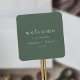 This sage green mountain wedding welcome bag sticker from the Emelia Collection is perfect for a woodsy destination wedding.