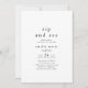 This unique neutral boho white and black sip and see invitation is perfect for a minimalistic meet the baby open house party.