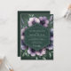 This elegant wedding stationery features a dramatic and moody aesthetic. Beautifully rendered watercolor anemones in shades of lavender, amethyst, and soft purple bloom against a deep emerald green background. Lush green foliage and sprigs of lavender complete this romantic and sophisticated botanical arrangement.