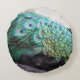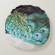 Emerald and Beige Elegant Round Peacock Feathers Cushion