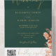 Emerald And Gold Rustic Floral QR Code Wedding All In One Invitation