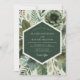An enchanting botanical design features a rich palette of deep greens and earthy tones. Lush foliage and a singular, textured bloom create an atmosphere of natural elegance. This artistic arrangement evokes a serene and romantic woodland feel, perfect for a sophisticated celebration.