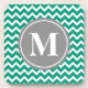 A chevron pattern in emerald green and white with a monogram template in grey. A chic, trendy, modern, pattern with a personal touch.