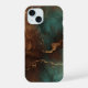 A rich and sophisticated phone case featuring deep emerald green and warm copper-brown marble swirls accented with delicate gold veining. This elegant abstract design blends earthy tones with a touch of luxury, creating a bold yet refined statement while keeping your phone protected in style.