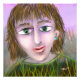 With luminous green eyes and a soft lavender backdrop, this portrait feels vibrant yet intimate. Her gaze shifts slightly, as if she has just noticed something unexpected. The layered brushwork and rich green tones create movement and depth, while her parted lips and attentive expression suggest wonder and reflection.