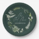 Rustic modern natural monochrome black and green floral and botanical wedding decor Mr and Mrs paper plates. With beautiful script text and sage green, grey, emerald green and white foliage watercolor details. This modern wedding collection is sure to set the style for your big day.