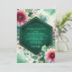 A richly colored design featuring abundant blooms in deep emerald, fuchsia, and soft pink hues. Delicate watercolor textures create a dreamy, romantic atmosphere perfect for an elegant affair. This artwork showcases lush foliage and striking dahlia-like flowers.