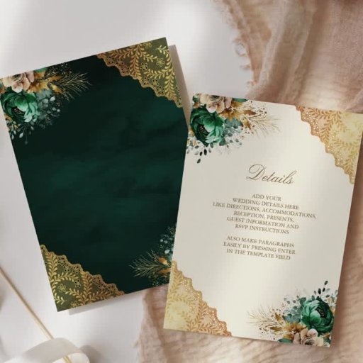Emerald Floral Gold Lace Cream Muslim Wedding RSVP Card