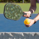 A refined seamless botanical pattern pickleball paddle featuring elegant ginkgo leaves illustrated in fine gold line art with soft teal accents, set against a deep emerald green background. This design blends timeless botanical beauty with a rich, modern color palette, creating a luxurious and sophisticated aesthetic.
