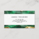 This modern business card features a rich emerald green marble design with luxurious gold rock texture accents on a clean white background. The layout includes a bold geometric house shape, making it perfect for real estate professionals.