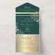 Emerald Gold Floral Photo Wedding All In One Invitation