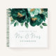Emerald and Gold Florals Wishes New Mr Mrs Guest Book. An alternative option for your wedding guest book, perfect for your Guests to write their good wishes, this design has elegant set script for Mr and Mrs and the rest of the text can be easily personalised, including the words on the back cover. .