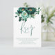 Emerald green and gold flowers Script QR Code Wedding RSVP enclosure making it convenient for your guests to reply by scanning your QR code leading to your wedding website reply page. RSVP is in a stylish set script and easily personalise the rest of the words to your own and replace the sample QR code on the back with yours simply by changing the sample url to that of your own website.