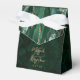 These elegant modern wedding favour boxes feature an emerald green watercolor agate geode background trimmed with faux gold glitter. Personalise them with the names of the couple in gold-coloured handwriting calligraphy over a large green ampersand, and the wedding date in copperplate font.