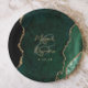 Emerald Green Agate Gold Script Wedding Paper Plate