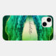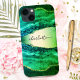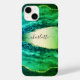 Emerald green agate, marble stone print as background Personalise and add your name. The name is written with a modern hand lettered style script.