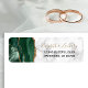 The left-hand edge of this elegant modern wedding invitation return address label features an emerald green watercolor agate border trimmed with faux gold glitter. The customisable text combines gold-coloured handwriting and black copperplate fonts on a grey and white marble background.